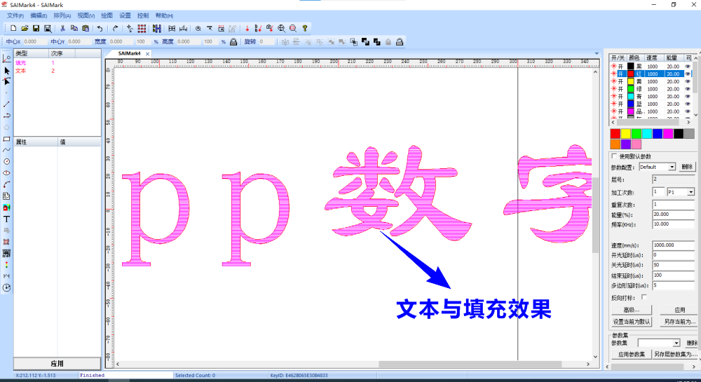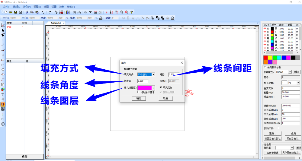 選擇填充方式、確定線條間距、線條角度、線條打標圖層,再點擊“確定”