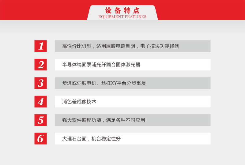 加工速度快:激光調(diào)阻機(jī)采用高速實(shí)時(shí)測(cè)量及自動(dòng)化程序控制技術(shù),使得加工時(shí)間縮短至幾十毫秒,大大提高了生產(chǎn)效率。