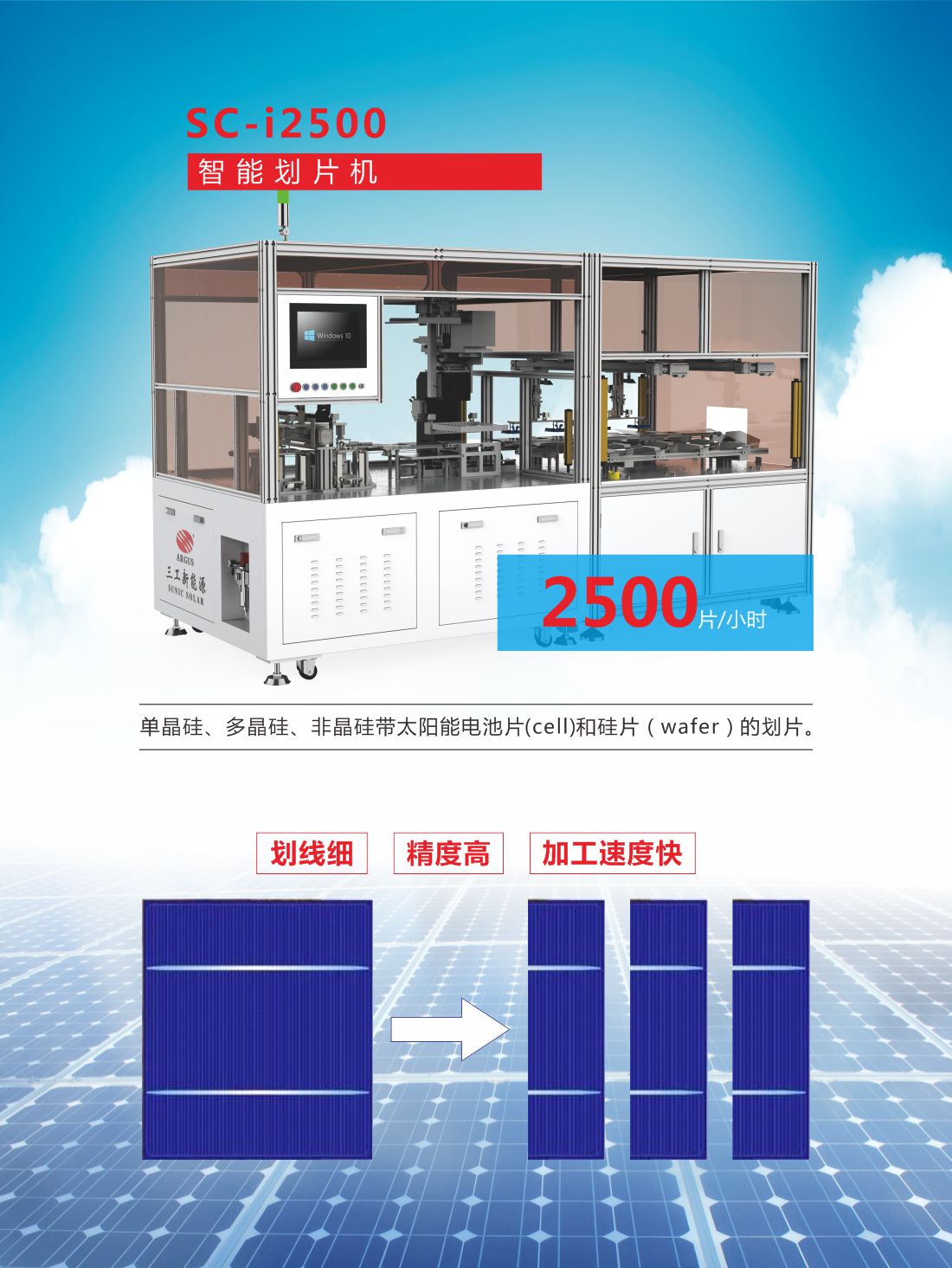 該型自動(dòng)劃片機(jī)解決的痛點(diǎn)是招工難,人力成本高的問題。自動(dòng)上下料,自動(dòng)定位劃片,極大節(jié)省人工。按照1人照看2臺(tái)機(jī)器,小時(shí)產(chǎn)量接近4000片,可以達(dá)到4個(gè)熟練工人的產(chǎn)量。該設(shè)備適用任意大小的電池片激光劃片,產(chǎn)能高、可達(dá)1800整片/小時(shí);效率高、速度快、省人工,自動(dòng)上下料;設(shè)備成本低但是劃片質(zhì)量好。更多型號(hào)持續(xù)研發(fā)中。