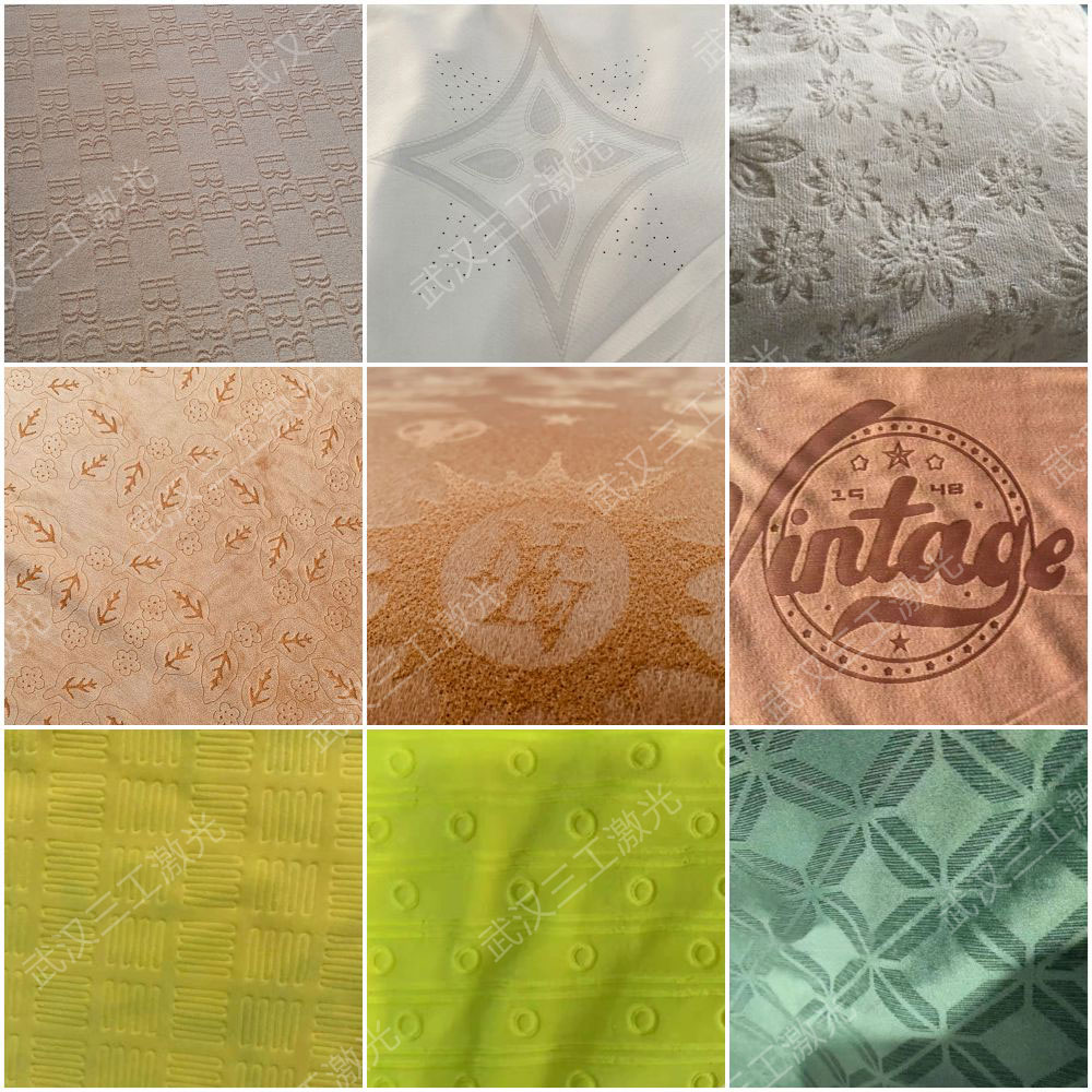 該設(shè)備是利用激光的熱效應(yīng),無(wú)接觸的對(duì)面料進(jìn)行燒灼刻蝕,并形成凸凹有致的花型圖案。